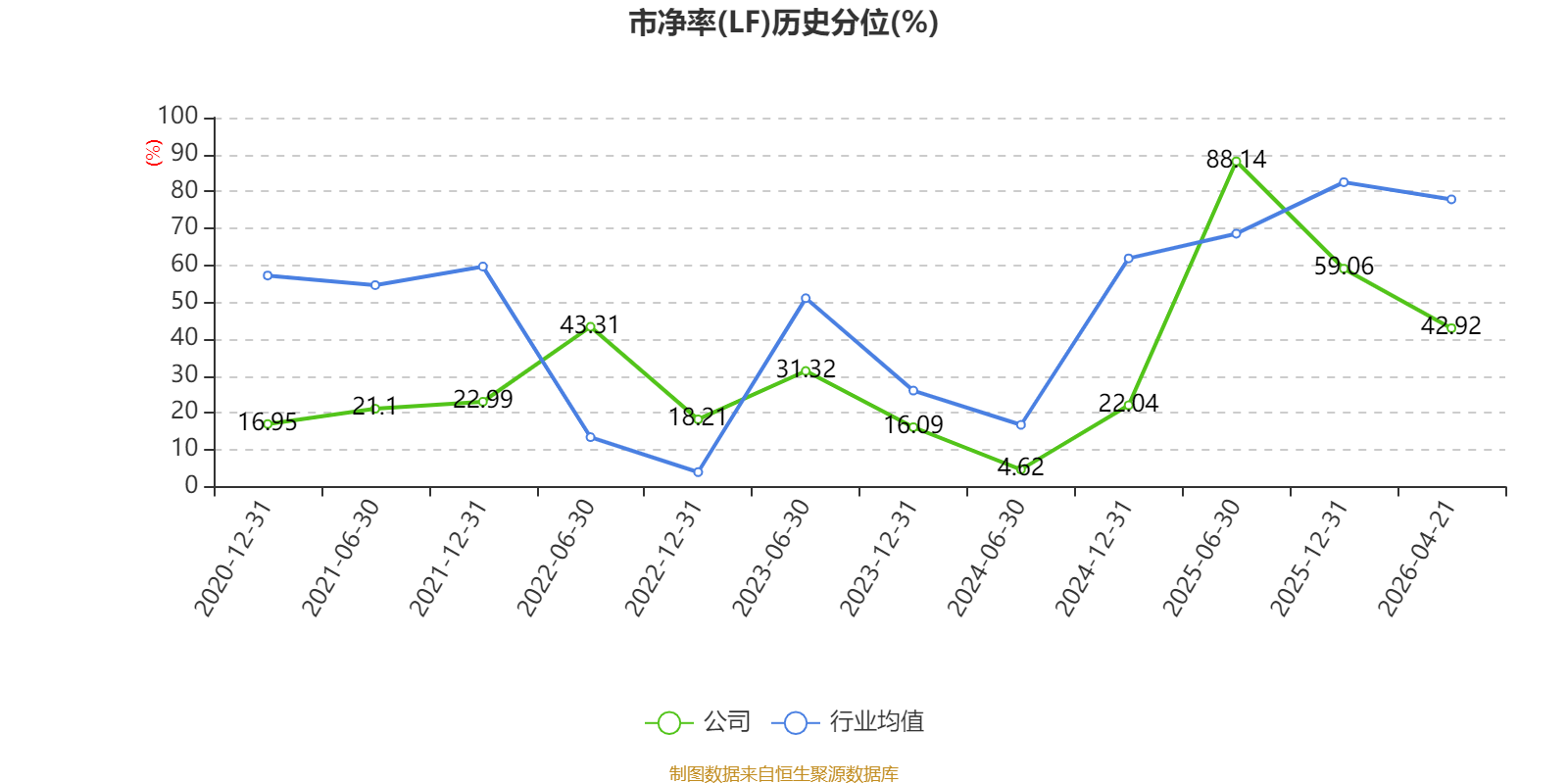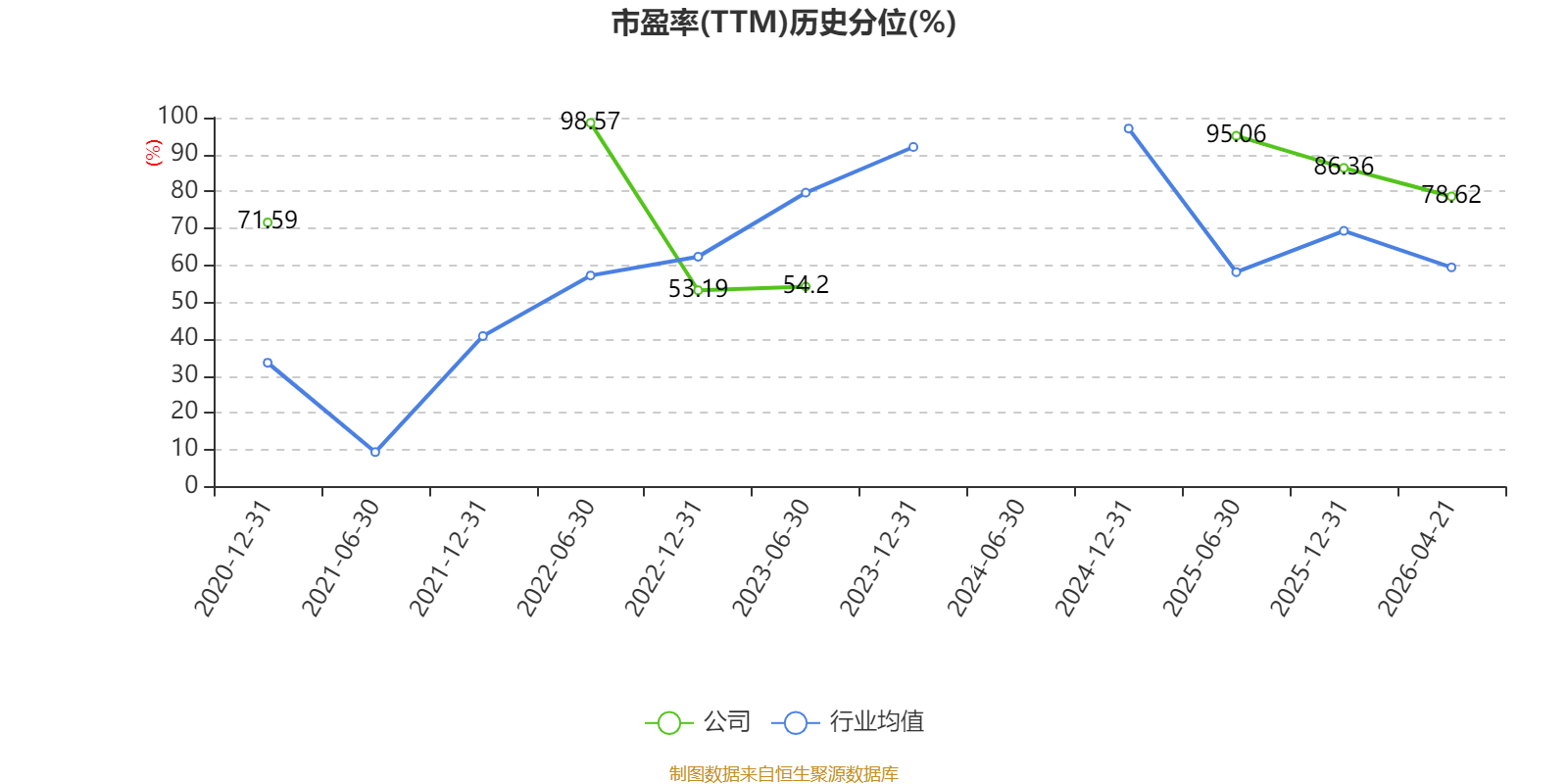市盈率、市净率为负时,不显示当期分位数,会导致折线图中断。