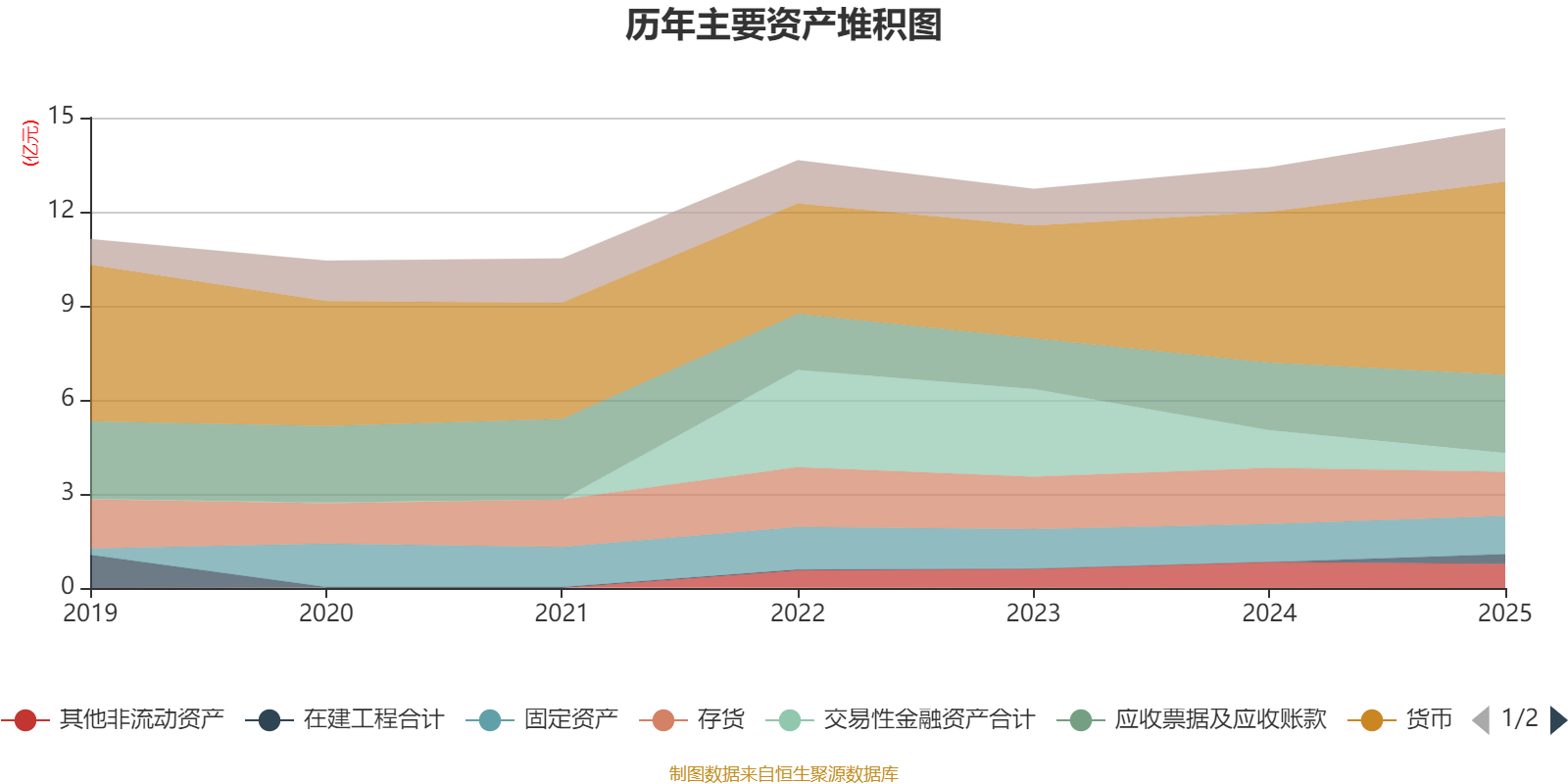 资产重大变化方面,截至2025年末,公司货币资金较上年末增加27.93%,占公司总资产比重上升6.1个百分点;交易性金融资产合计较上年末减少49.96%,占公司总资产比重下降4.85个百分点;存货较上年末减少21.33%,占公司总资产比重下降3.75个百分点;在建工程合计占公司总资产的2.17%,上年末为0。