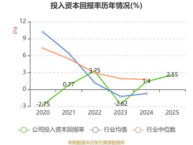 数据显示,2025年公司加权平均净资产收益率为3.33%,较上年同期上升0.63个百分点。公司2025年投入资本回报率为2.55%,较上年同期上升1.15个百分点。