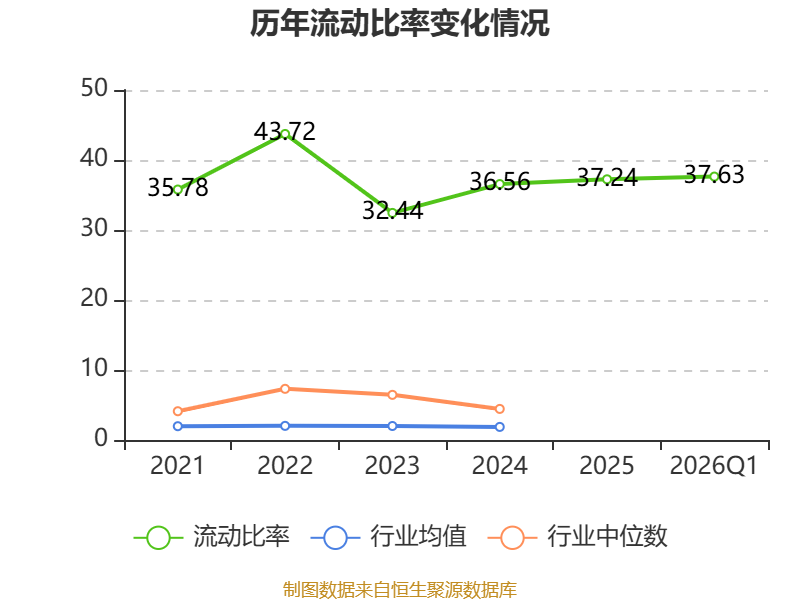 2026年第一季度,公司流动比率为37.63,速动比率为36.71。