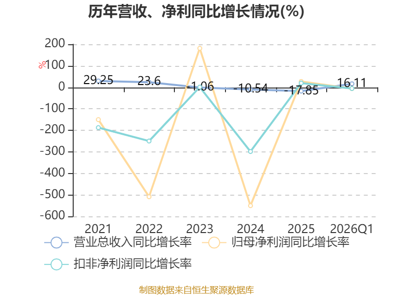 资产重大变化方面,截至2026年一季度末,公司固定资产较上年末减少1.63%,占公司总资产比重下降1.71个百分点;应收票据及应收账款较上年末增加6.12%,占公司总资产比重上升1.37个百分点;货币资金较上年末增加30.41%,占公司总资产比重上升1.15个百分点;存货较上年末减少17.04%,占公司总资产比重下降0.7个百分点。