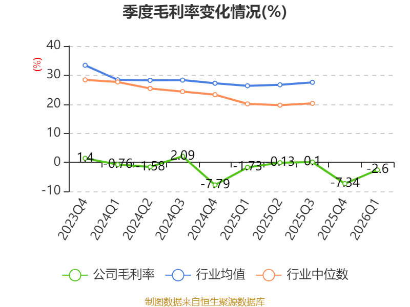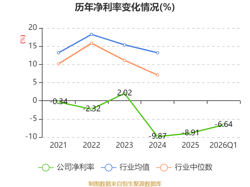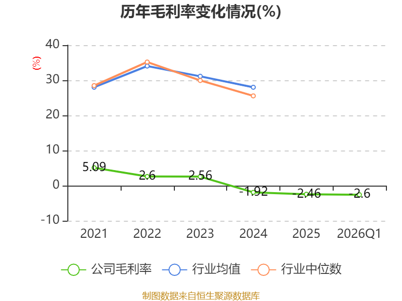盈利能力方面, 2026年一季度公司加权平均净资产收益率为-3.91%,同比下降0.84个百分点。公司2026年第一季度投入资本回报率为-1.84%,较上年同期下降0.4个百分点。