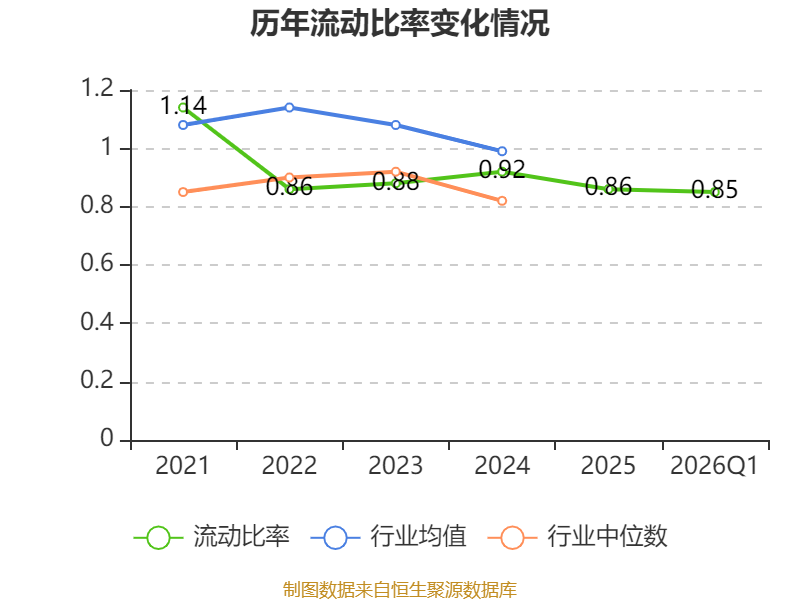 2026年第一季度,公司流动比率为0.85,速动比率为0.79。