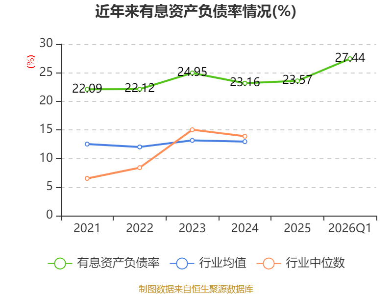 盈利能力方面, 2026年一季度公司加权平均净资产收益率为4.46%,同比下降1.07个百分点。公司2026年第一季度投入资本回报率为2.73%,较上年同期下降0.97个百分点。