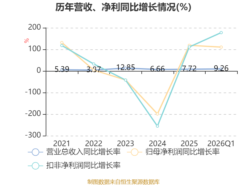 资产重大变化方面,截至2026年一季度末,公司存货较上年末增加50.89%,占公司总资产比重上升5.5个百分点;应收票据及应收账款较上年末减少10.83%,占公司总资产比重下降3.85个百分点;预付款项较上年末减少51.43%,占公司总资产比重下降2.5个百分点;货币资金较上年末增加15.96%,占公司总资产比重上升1.65个百分点。