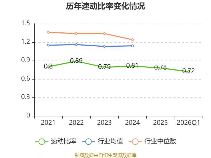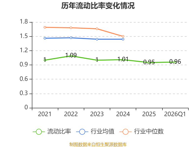 2026年第一季度,公司流动比率为0.96,速动比率为0.72。