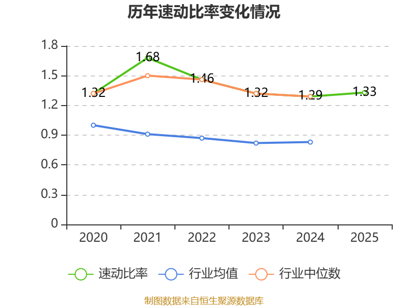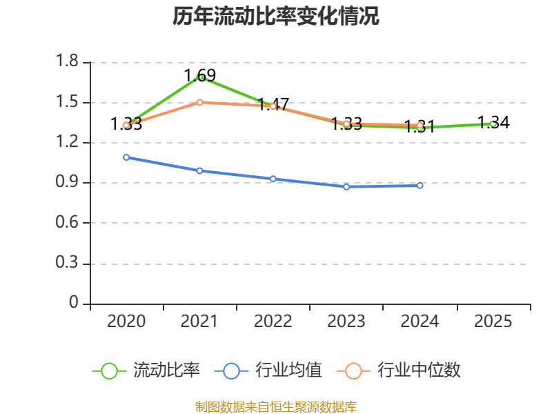 2025年,公司流动比率为1.34,速动比率为1.33。