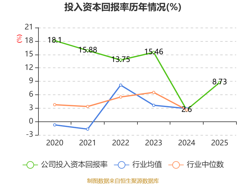 数据显示,2025年公司加权平均净资产收益率为8.69%,较上年同期上升6.75个百分点。公司2025年投入资本回报率为8.73%,较上年同期上升6.13个百分点。