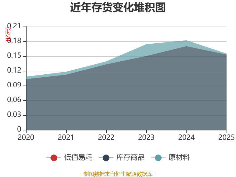 从存货变动来看,截至2025年末,公司存货账面价值为1553.22万元,占净资产的1.3%,较上年末减少269.06万元。其中,存货跌价准备为1.65万元,计提比例为0.11%。