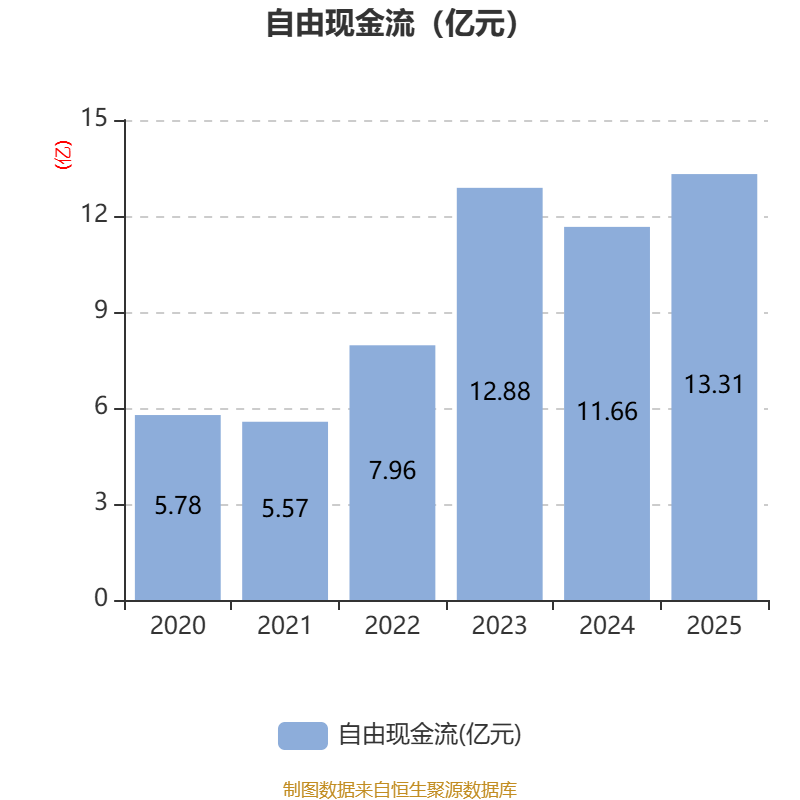 截至2025年,公司经营活动现金流净额为22.59亿元,同比增长53.93%;筹资活动现金流净额-13.17亿元,同比减少4605.95万元;投资活动现金流净额-8.14亿元,上年同期为-1.98亿元。