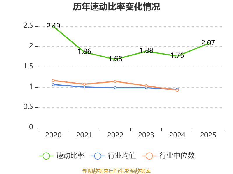2025年,公司流动比率为2.32,速动比率为2.07。