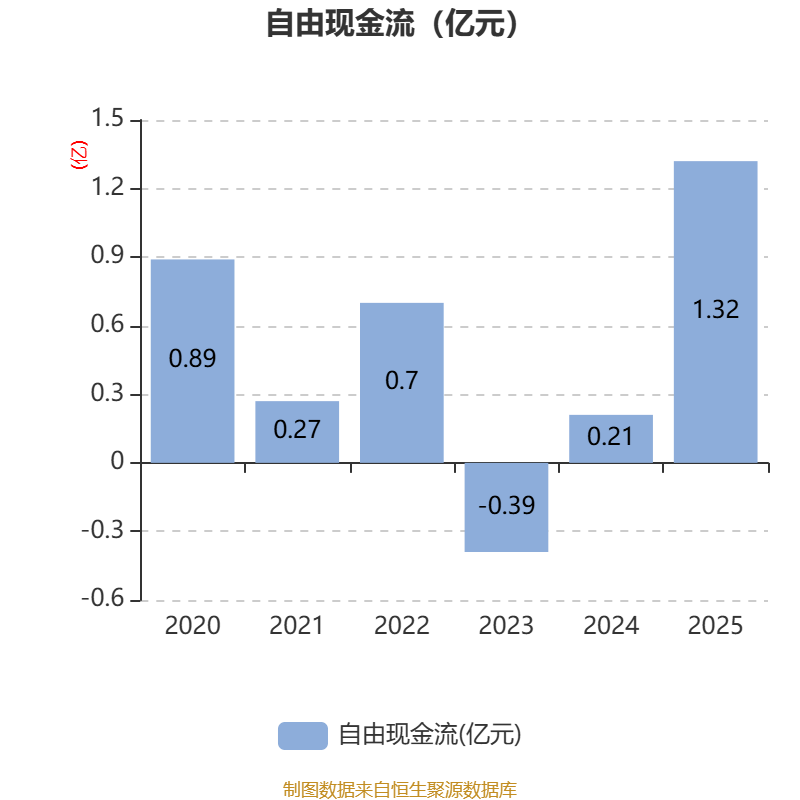 截至2025年,公司经营活动现金流净额为1.24亿元,同比下降20.34%;筹资活动现金流净额-4274.38万元,同比减少2486.29万元;投资活动现金流净额4463.66万元,上年同期为-1.21亿元。