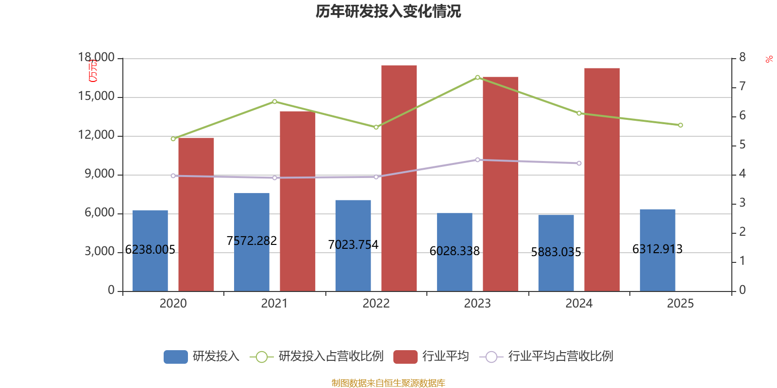 2025年全年,公司研发投入金额为6312.91万元,同比增长7.31%;研发投入占营业收入比例为5.7%,相比上年同期下降0.41个百分点。此外,公司全年研发投入资本化率为4.9%。