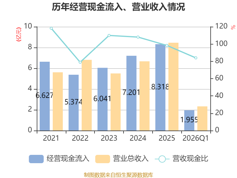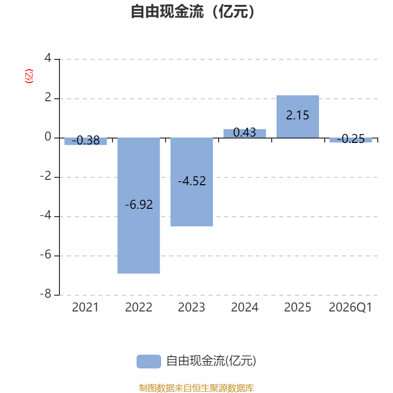 截至2026年一季度末,公司经营活动现金流净额为1128.57万元,同比下降53.94%;筹资活动现金流净额0元,同比增加2411.58元;投资活动现金流净额117.67万元,上年同期为3625.87万元。