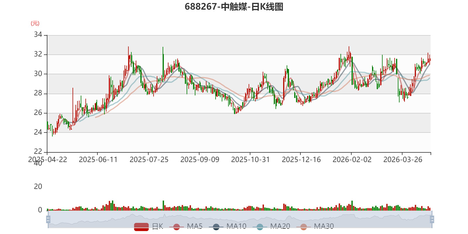 中证智能财讯中触媒(688267)4月22日披露2026年第一季度报告。公司实现营业总收入2.33亿元,同比增长16.96%;归母净利润3163万元,同比下降22.31%;扣非净利润3109.74万元,同比下降21.88%;经营活动产生的现金流量净额为1128.57万元,同比下降53.94%;报告期内,中触媒基本每股收益为0.18元,加权平均净资产收益率为1.11%。