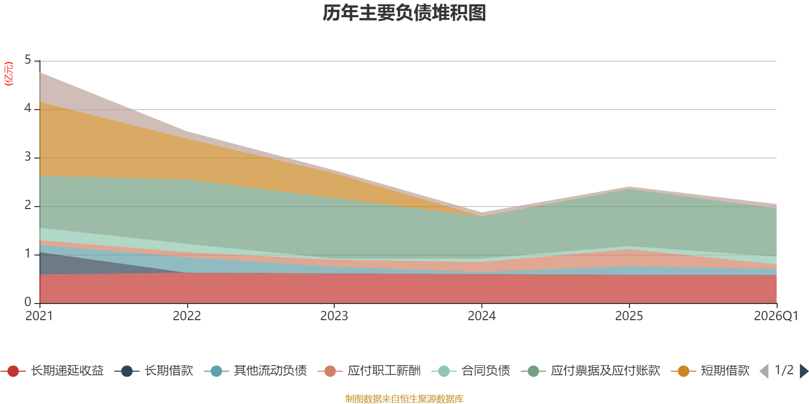 负债重大变化方面,截至2026年一季度末,公司应付职工薪酬较上年末减少73.73%,占公司总资产比重下降0.84个百分点;应付票据及应付账款较上年末减少15.97%,占公司总资产比重下降0.61个百分点;合同负债较上年末增加159.6%,占公司总资产比重上升0.32个百分点;其他流动负债较上年末减少29.66%,占公司总资产比重下降0.18个百分点。