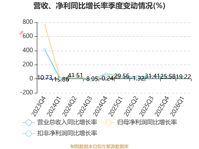资产重大变化方面,截至2026年一季度末,公司货币资金较上年末增加57.03%,占公司总资产比重上升4.18个百分点;交易性金融资产合计较上年末减少19.68%,占公司总资产比重下降3.02个百分点;其他非流动资产较上年末减少23.03%,占公司总资产比重下降1.38个百分点;存货较上年末减少8.08%,占公司总资产比重下降1.07个百分点。
