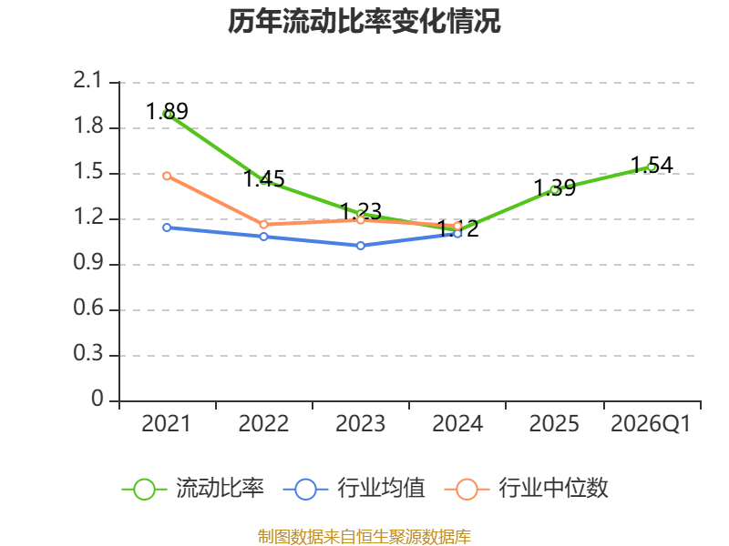 2026年第一季度,公司流动比率为1.54,速动比率为1.11。