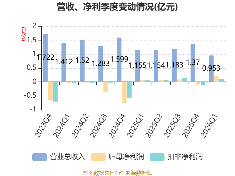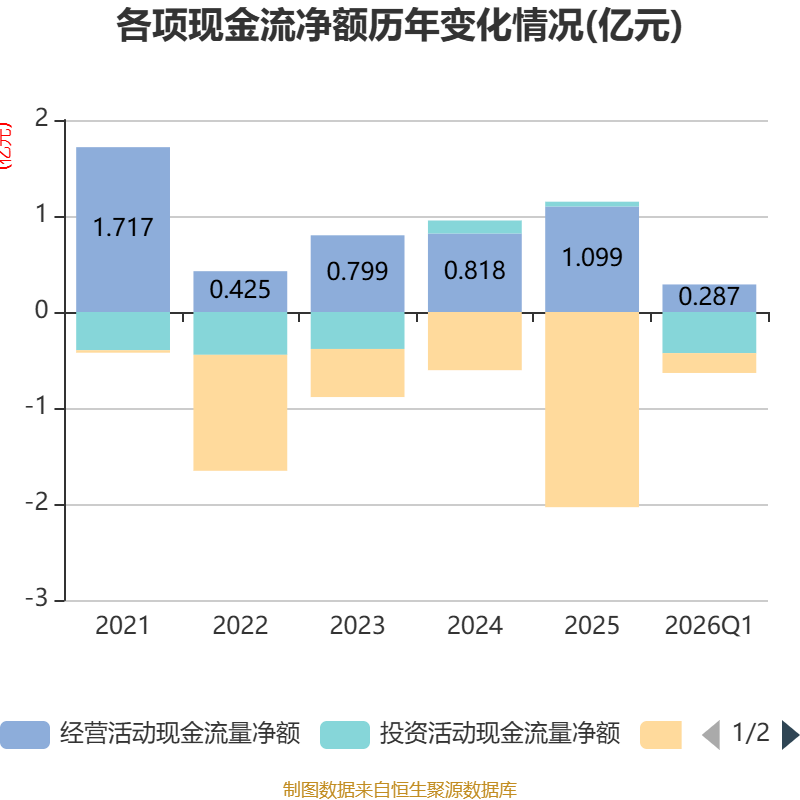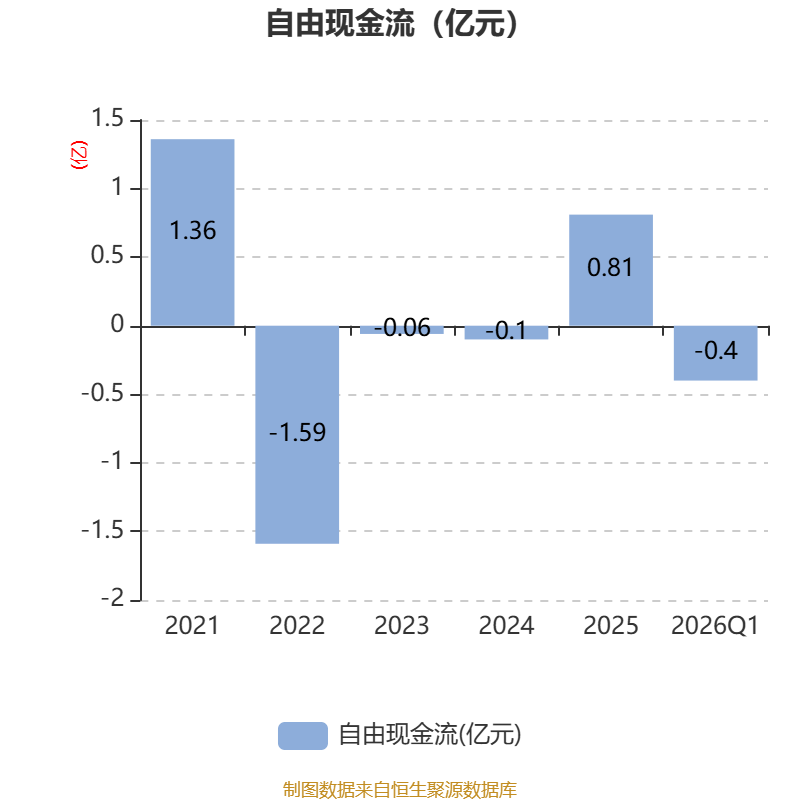 截至2026年一季度末,公司经营活动现金流净额为2867.23万元,同比增长110.87%;筹资活动现金流净额-2070.84万元,同比增加8163.74万元;投资活动现金流净额-4279.75万元,上年同期为-2374.39万元。