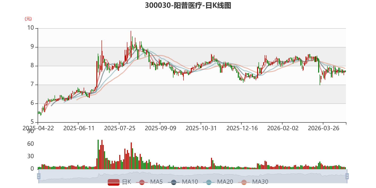 中证智能财讯阳普医疗(300030)4月22日披露2026年第一季度报告。公司实现营业总收入9531.48万元,同比下降17.50%;归母净利润2167.96万元,同比增长177.64%;扣非净利润1147.53万元,同比增长57.23%;经营活动产生的现金流量净额为2867.23万元,同比增长110.87%;报告期内,阳普医疗基本每股收益为0.07元,加权平均净资产收益率为3.43%。