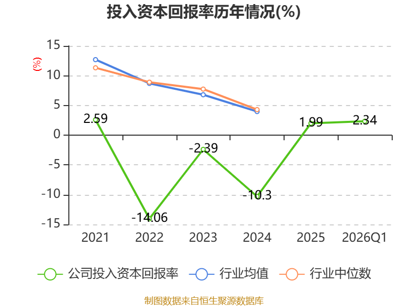 盈利能力方面, 2026年一季度公司加权平均净资产收益率为3.43%,同比上升2.15个百分点。公司2026年第一季度投入资本回报率为2.34%,较上年同期上升1.41个百分点。