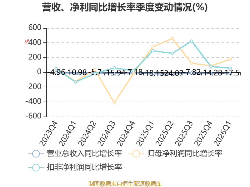 资产重大变化方面,截至2026年一季度末,公司交易性金融资产合计占公司总资产的4.2%,上年末为0;货币资金较上年末减少21.96%,占公司总资产比重下降3.38个百分点;长期股权投资较上年末减少10.8%,占公司总资产比重下降1.04个百分点;在建工程合计较上年末增加2889.88%,占公司总资产比重上升1个百分点。