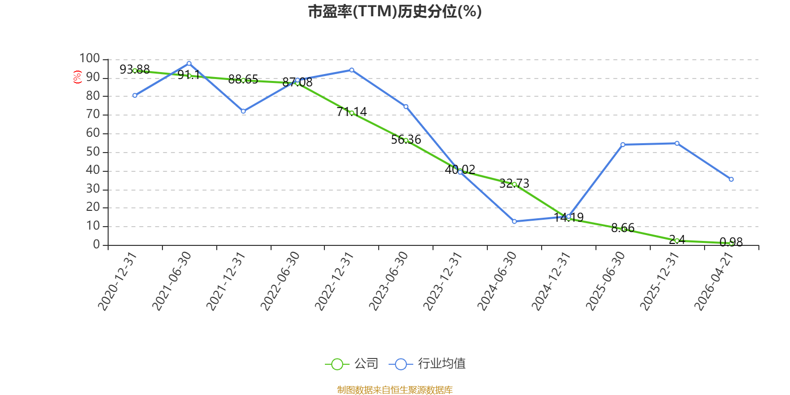 市盈率、市净率为负时,不显示当期分位数,会导致折线图中断。