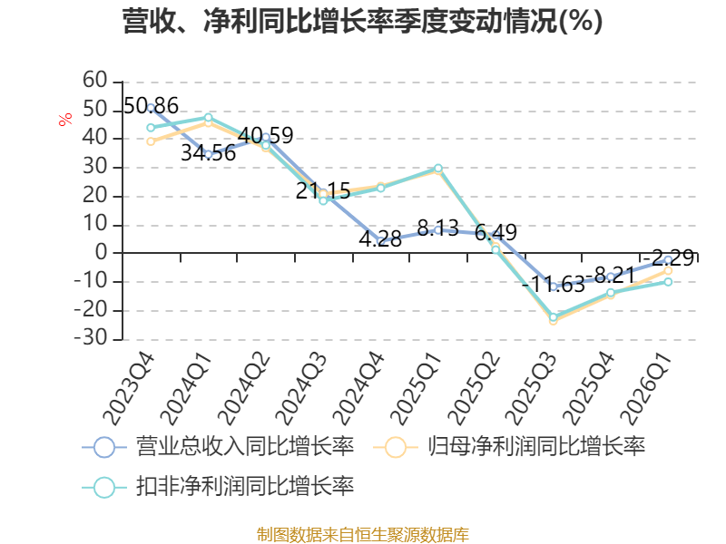 资产重大变化方面,截至2026年一季度末,公司货币资金较上年末减少6.12%,占公司总资产比重下降6.32个百分点;交易性金融资产合计占公司总资产的3.63%,上年末为0;应收票据及应收账款较上年末增加349.51%,占公司总资产比重上升2.71个百分点;预付款项较上年末增加69.08%,占公司总资产比重上升1.22个百分点。