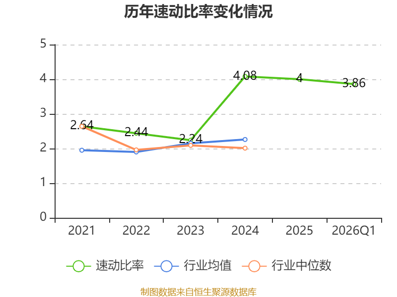 2026年第一季度,公司流动比率为4.3,速动比率为3.86。