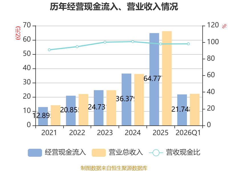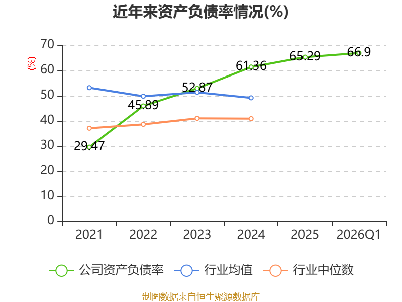 2026年第一季度,公司流动比率为1.32,速动比率为0.97。