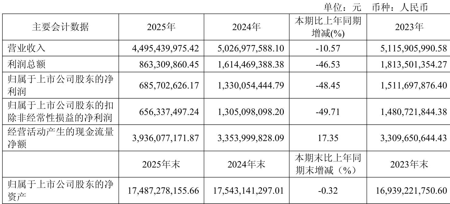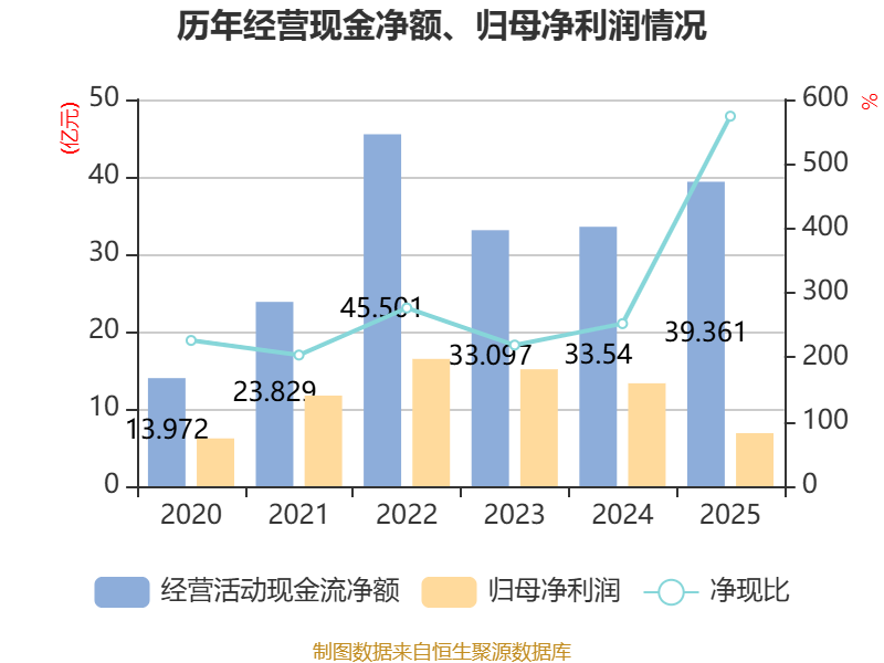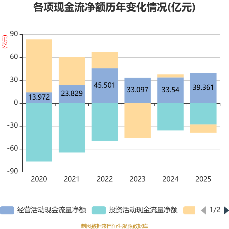 截至2025年,公司经营活动现金流净额为39.36亿元,同比增长17.35%;筹资活动现金流净额-10.87亿元,同比减少14.82亿元;投资活动现金流净额-28.03亿元,上年同期为-35.85亿元。