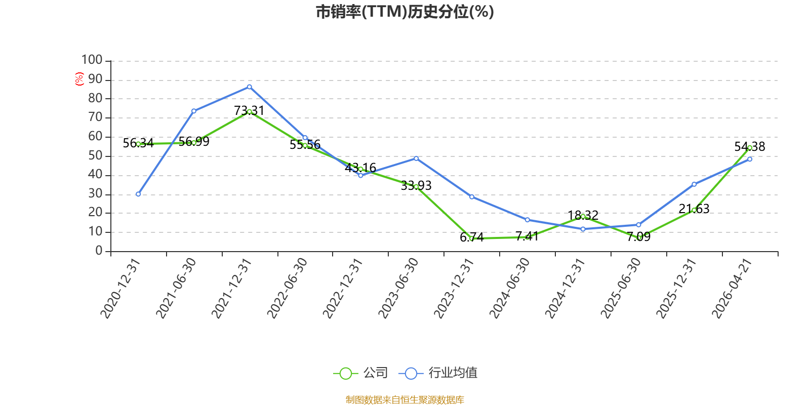 以4月21日收盘价计算,节能风电目前市盈率(TTM)约为39.8倍,市净率(LF)约1.56倍,市销率(TTM)约6.07倍。