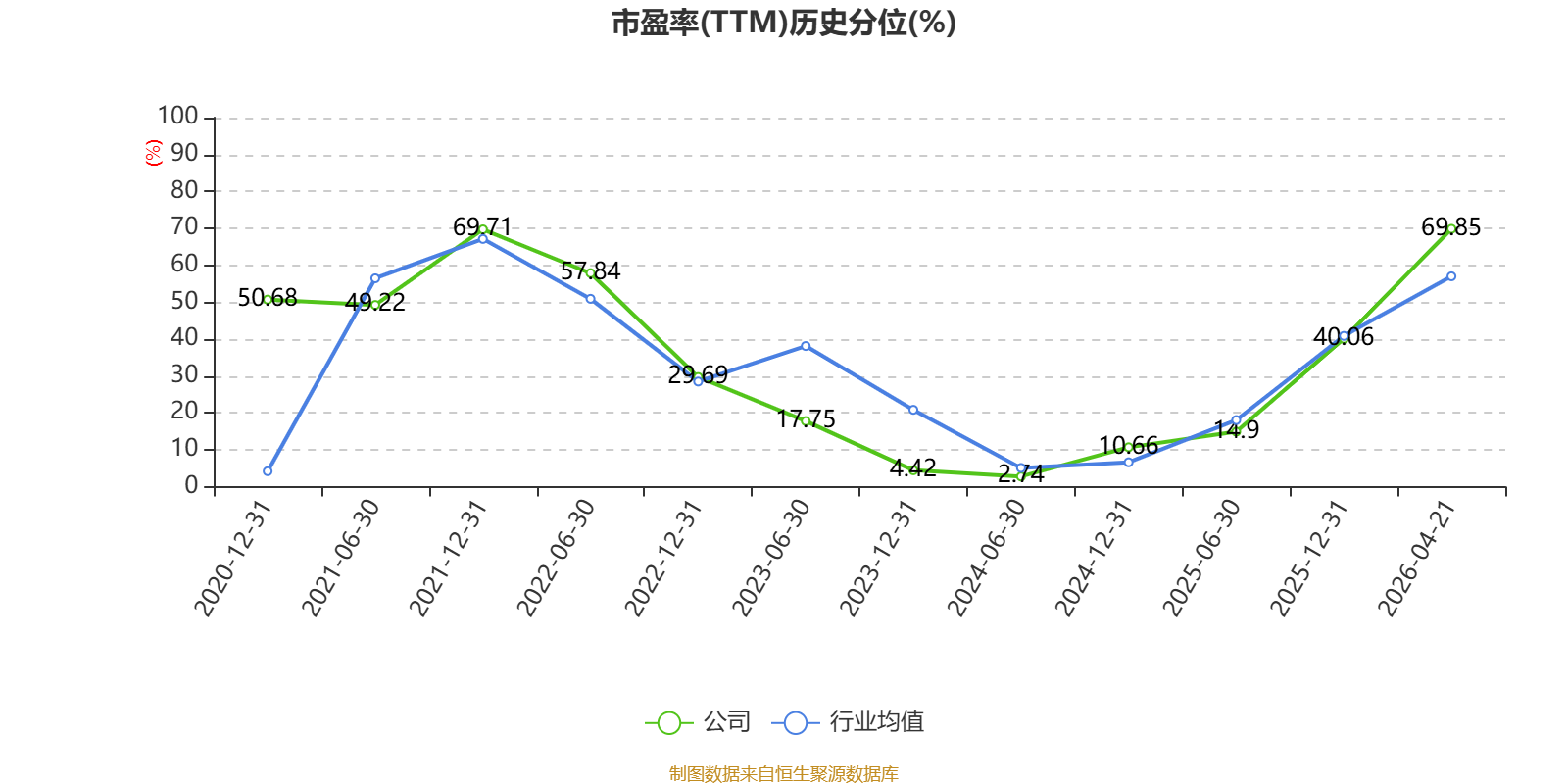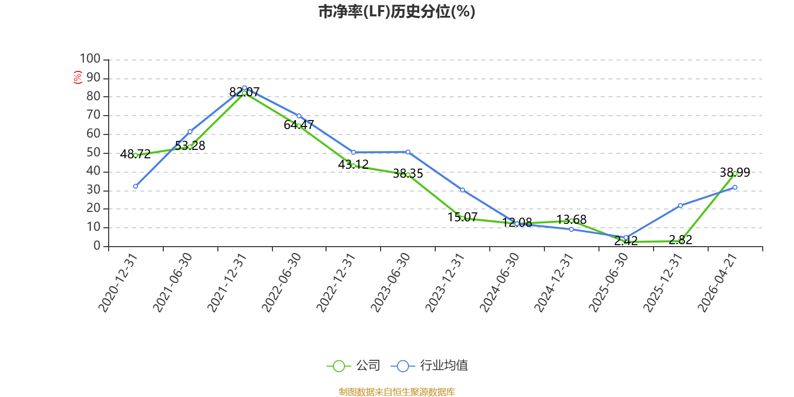 市盈率、市净率为负时,不显示当期分位数,会导致折线图中断。