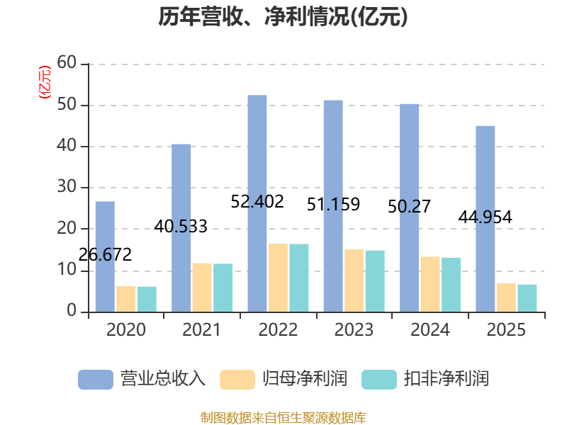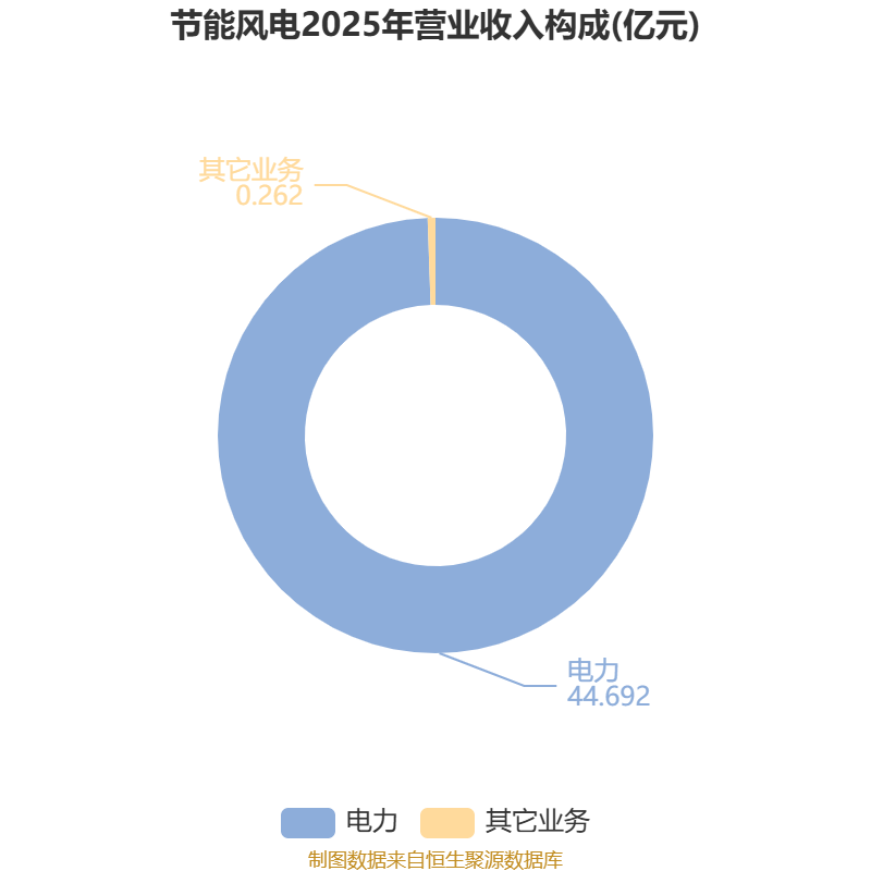 中证智能财讯节能风电(601016)4月22日披露2025年年度报告。2025年,公司实现营业总收入44.95亿元,同比下降10.57%;归母净利润6.86亿元,同比下降48.45%;扣非净利润6.56亿元,同比下降49.71%;经营活动产生的现金流量净额为39.36亿元,同比增长17.35%;报告期内,节能风电基本每股收益为0.106元,加权平均净资产收益率为3.89%。公司2025年度分配预案为:拟向全体股东每10股派现0.03元(含税)。