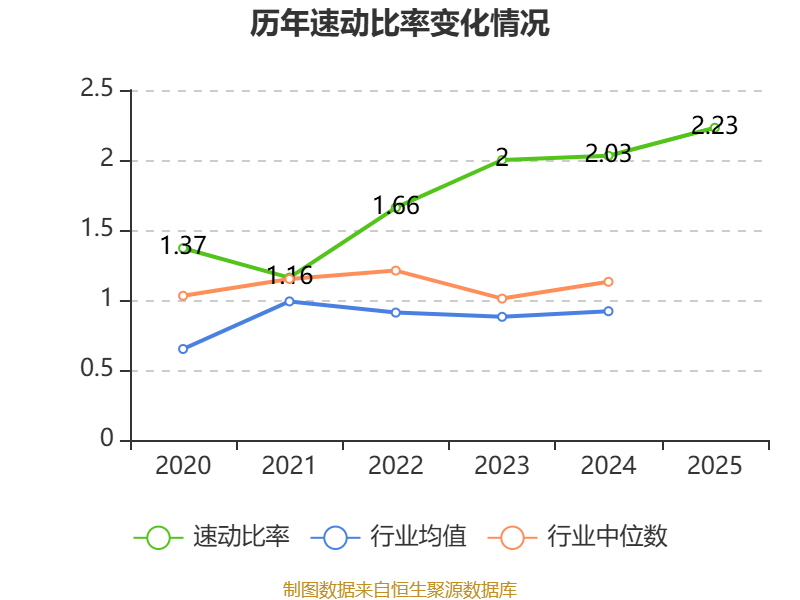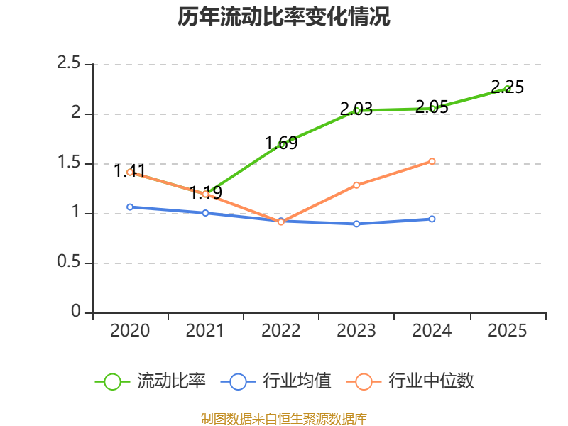 2025年,公司流动比率为2.25,速动比率为2.23。