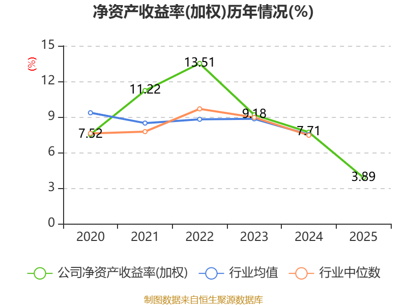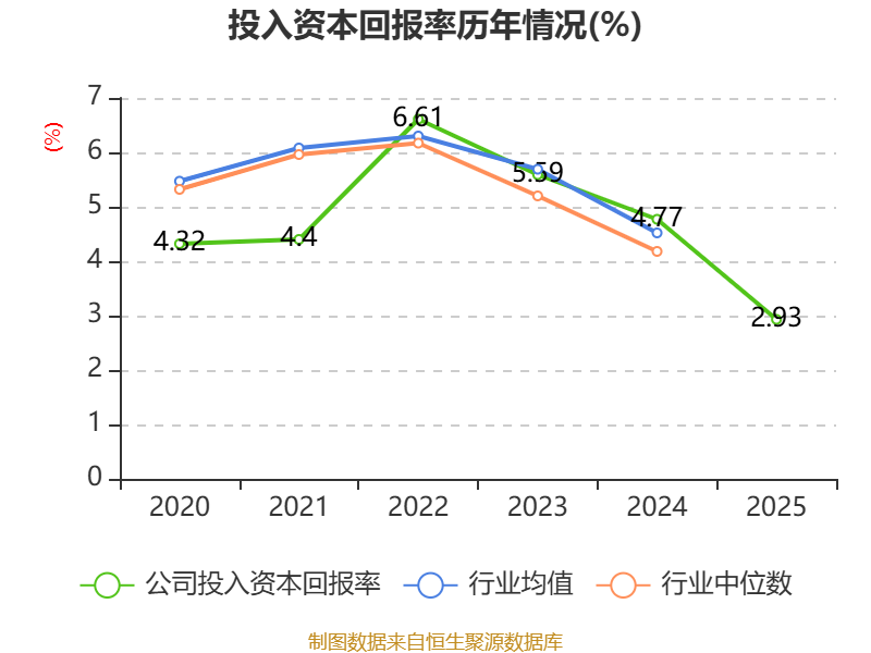 数据显示,2025年公司加权平均净资产收益率为3.89%,较上年同期下降3.82个百分点。公司2025年投入资本回报率为2.93%,较上年同期下降1.84个百分点。
