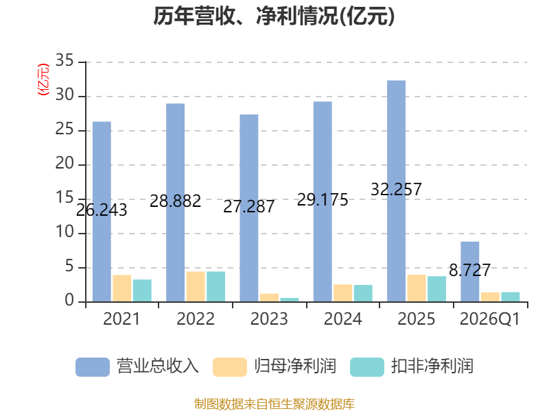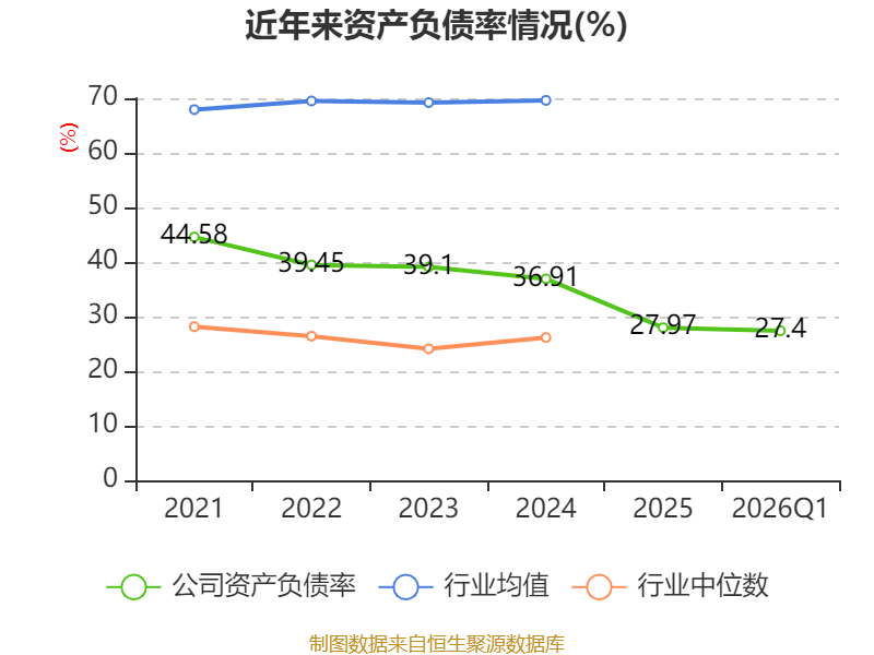 负债重大变化方面,截至2026年一季度末,公司应付职工薪酬较上年末减少48.17%,占公司总资产比重下降0.85个百分点;短期借款较上年末增加7.91%,占公司总资产比重上升0.48个百分点;长期借款较上年末增加26.68%,占公司总资产比重上升0.32个百分点;应付票据及应付账款较上年末减少1.89%,占公司总资产比重下降0.29个百分点。