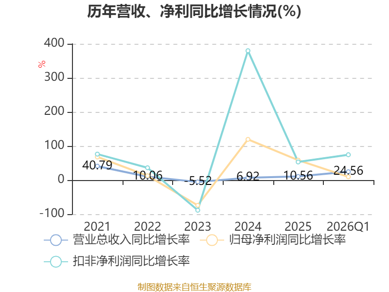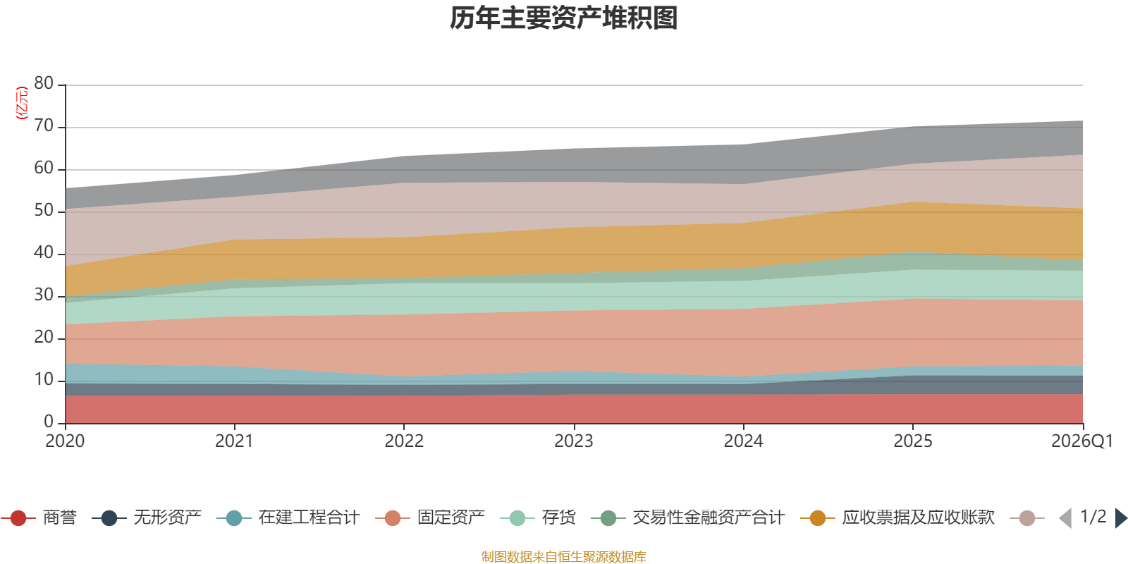 资产重大变化方面,截至2026年一季度末,公司货币资金较上年末增加40.83%,占公司总资产比重上升4.9个百分点;交易性金融资产合计较上年末减少43.79%,占公司总资产比重下降2.73个百分点;固定资产较上年末减少3.65%,占公司总资产比重下降1.27个百分点;一年内到期的非流动资产较上年末减少74.66%,占公司总资产比重下降0.93个百分点。