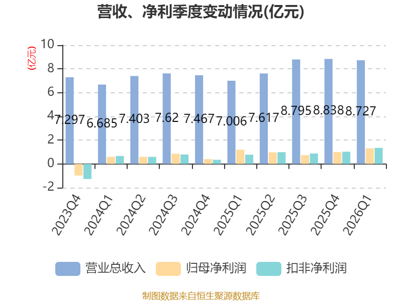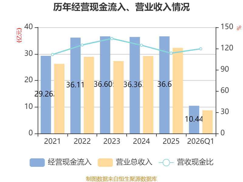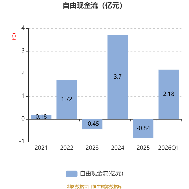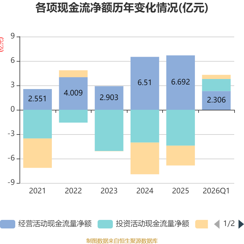 截至2026年一季度末,公司经营活动现金流净额为2.31亿元,同比增长1540.36%;筹资活动现金流净额5113.08万元,同比增加7373.66万元;投资活动现金流净额1.48亿元,上年同期为1.86亿元。