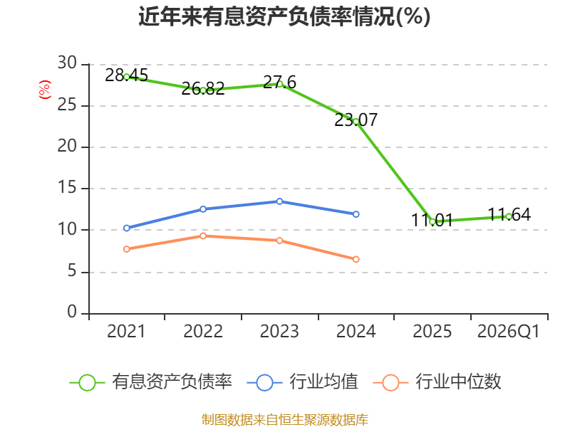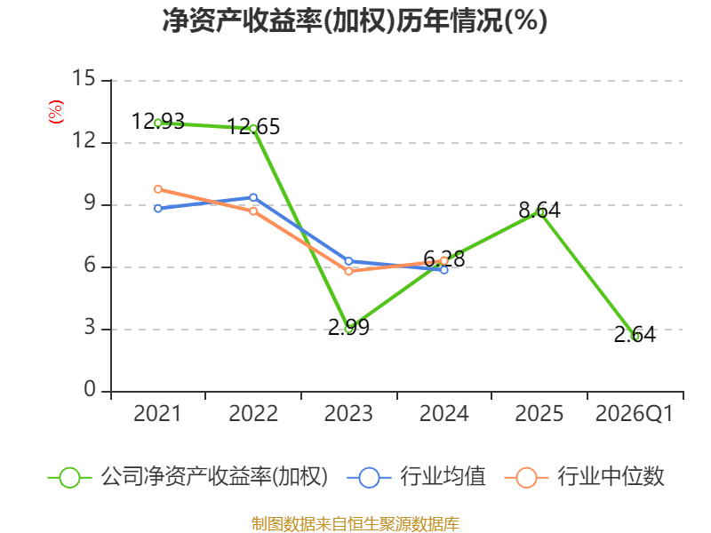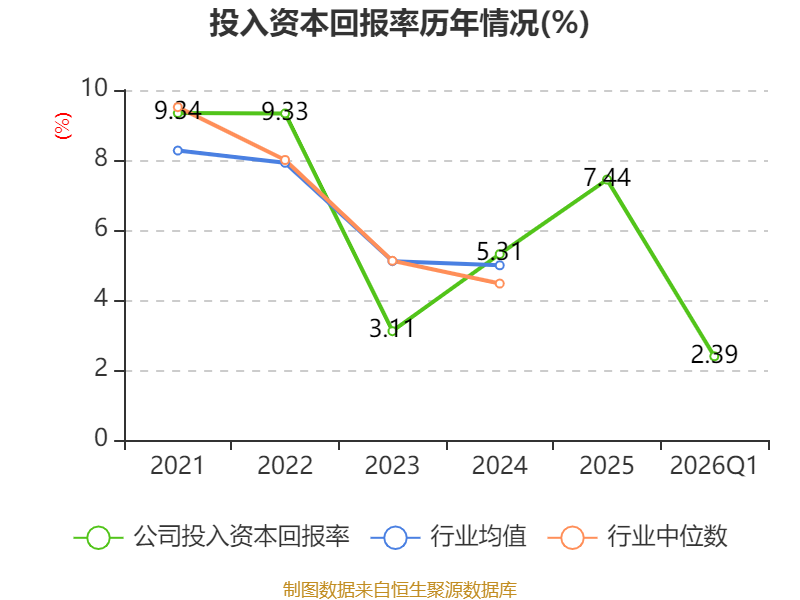 盈利能力方面, 2026年一季度公司加权平均净资产收益率为2.64%,同比下降0.29个百分点。公司2026年第一季度投入资本回报率为2.39%,较上年同期上升0.09个百分点。