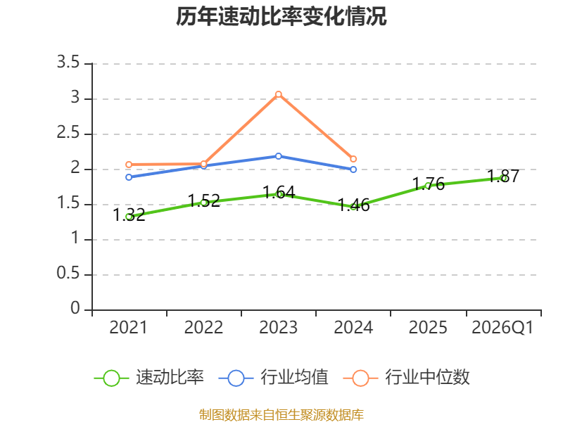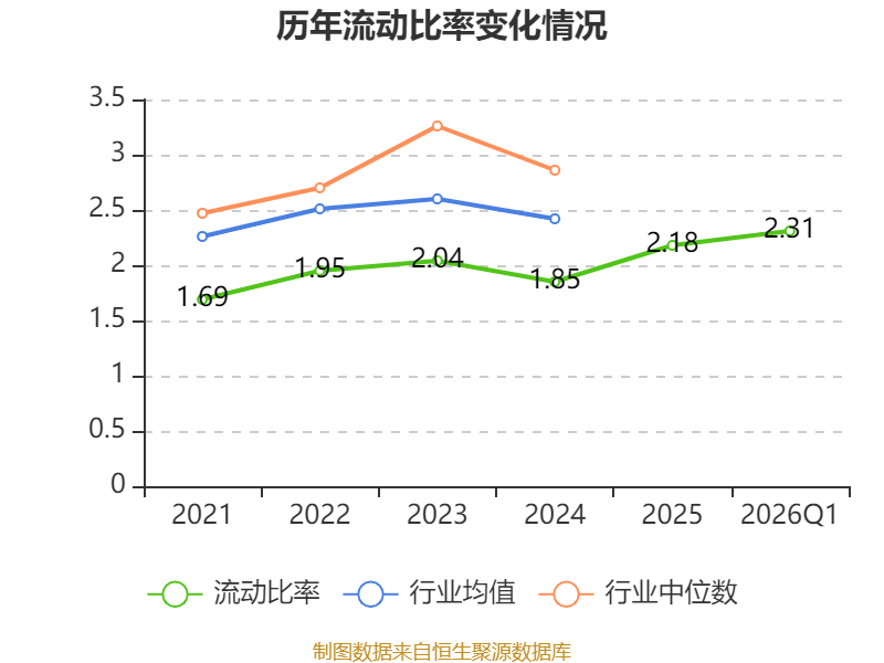 2026年第一季度,公司流动比率为2.31,速动比率为1.87。