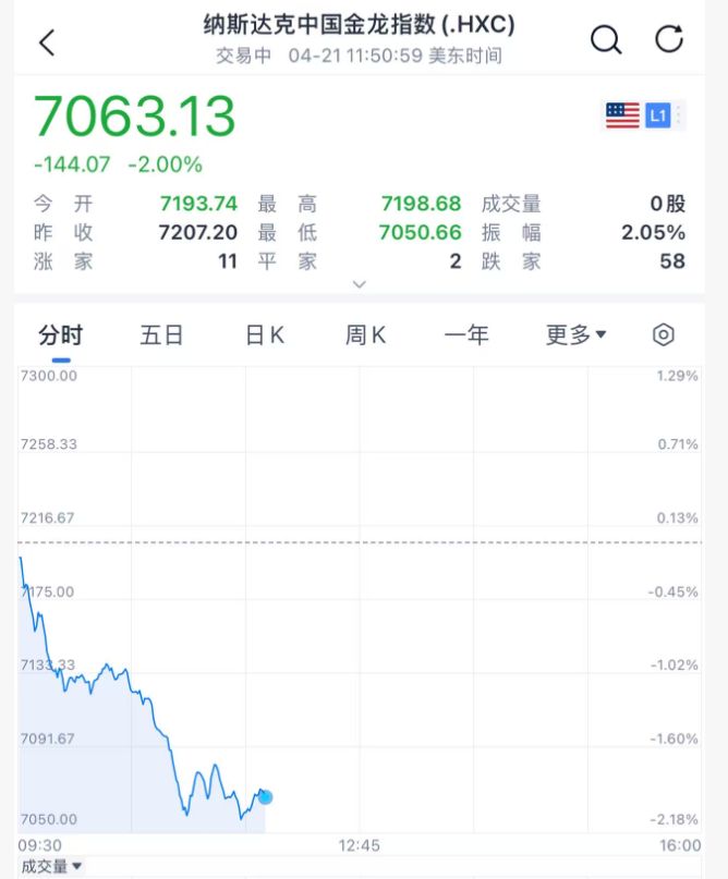 4月21日晚间,美股三大指数早盘走高,截至发稿,直线跳水。