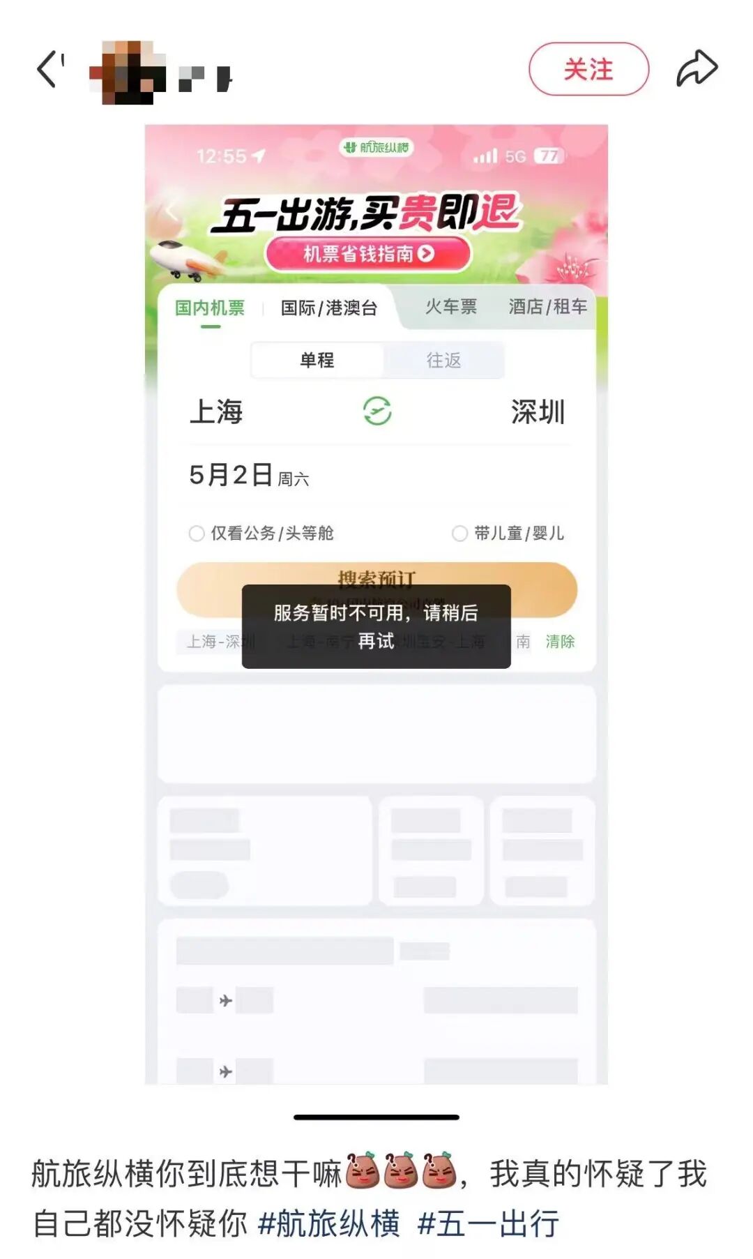 崩上热搜!网友:吓一跳,以为票没了!航旅纵横:正全力抢修
