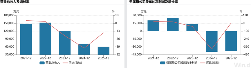 2025年,数字政通营业收入6.02亿元,同比下滑15.64%;归属于上市公司股东的净利润亏损3.79亿元。这是数字政通连续第二个会计年度出现大额亏损。2024年公司归母净利润亏损3.96亿元,两年累计亏损超7.7亿元。从2023年盈利1.34亿元到两年亏损超7.7亿元,公司业绩滑坡之大令市场侧目。
