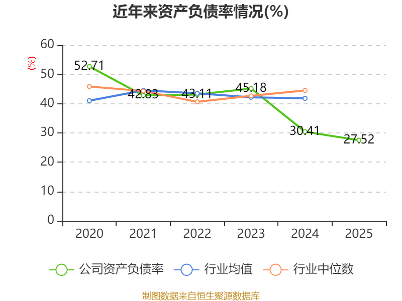 负债重大变化方面,截至2025年末,公司一年内到期的非流动负债较上年末减少89.53%,占公司总资产比重下降5.35个百分点;应付票据及应付账款较上年末增加30.48%,占公司总资产比重上升2.79个百分点;长期借款较上年末减少100%,占公司总资产比重下降0.28个百分点;其他应付款(含利息和股利)较上年末增加264.68%,占公司总资产比重上升0.26个百分点。