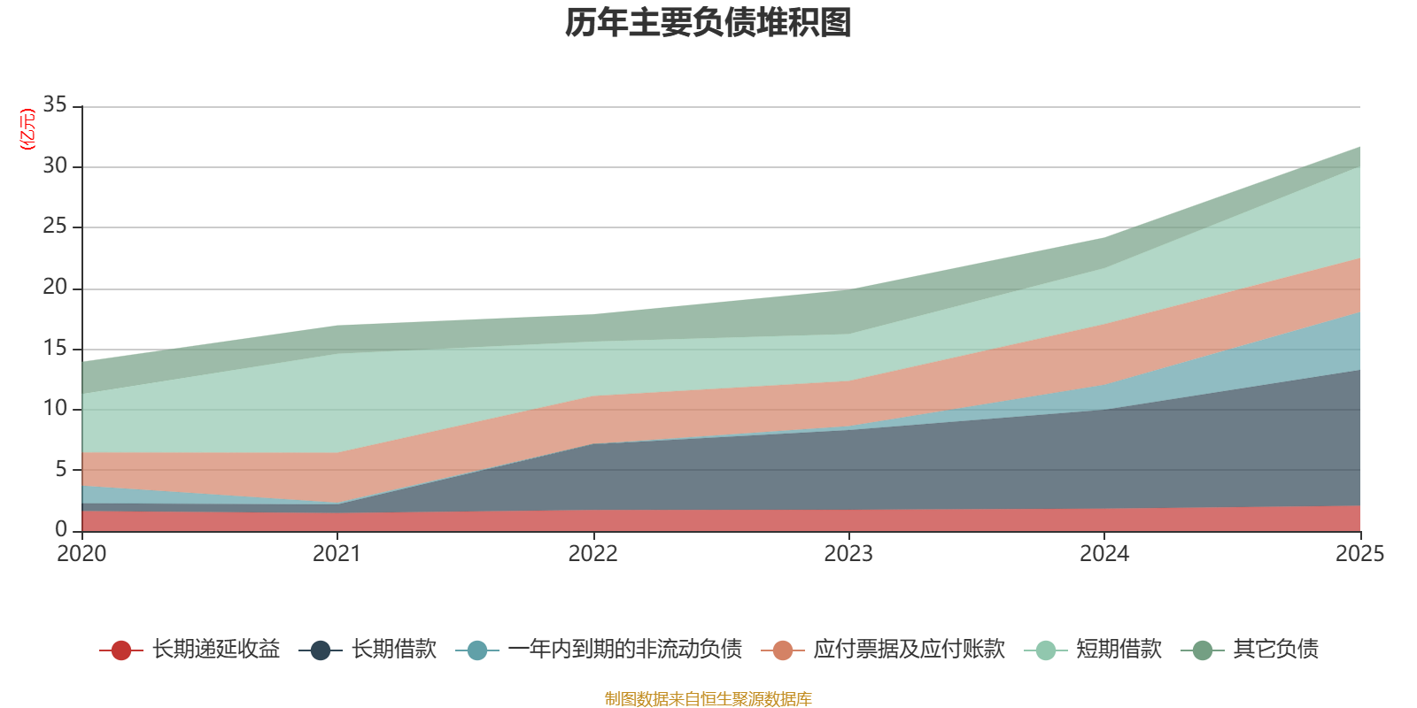 负债重大变化方面,截至2025年末,公司短期借款较上年末增加64.42%,占公司总资产比重上升3.16个百分点;一年内到期的非流动负债较上年末增加130.56%,占公司总资产比重上升3.09个百分点;长期借款较上年末增加37.4%,占公司总资产比重上升2.91个百分点;应付票据及应付账款较上年末减少11.01%,占公司总资产比重下降1.17个百分点。