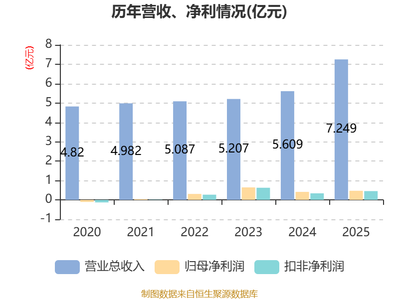 2025年全年,公司研发投入金额为6279.88万元,同比增长19.98%;研发投入占营业收入比例为8.66%,相比上年同期下降0.67个百分点。此外,公司全年研发投入资本化率为5.2%。