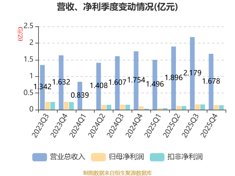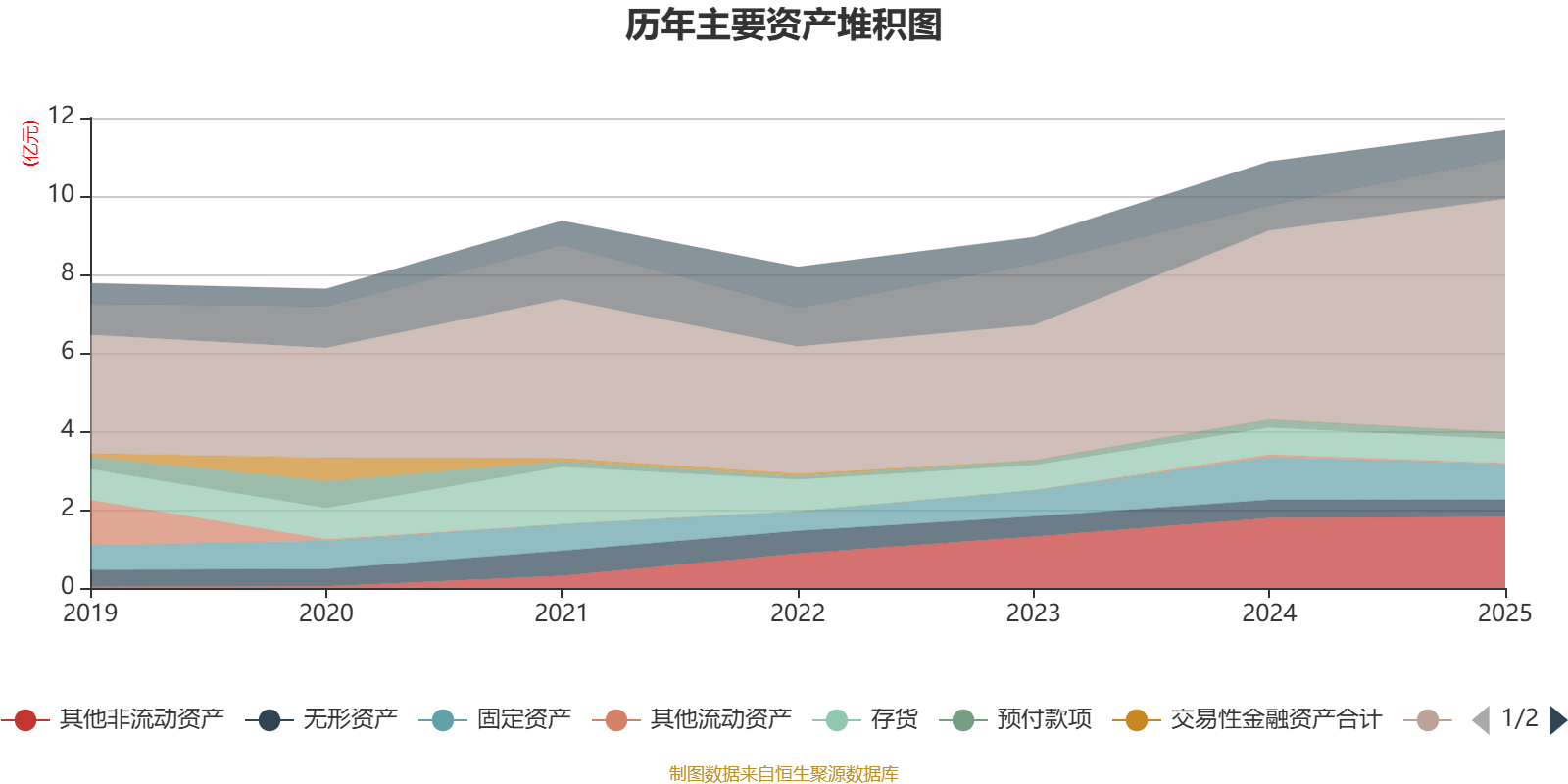 从存货变动来看,截至2025年末,公司存货账面价值为6038.45万元,占净资产的11.41%,较上年末减少747.38万元。其中,存货跌价准备为875.53万元,计提比例为12.66%。