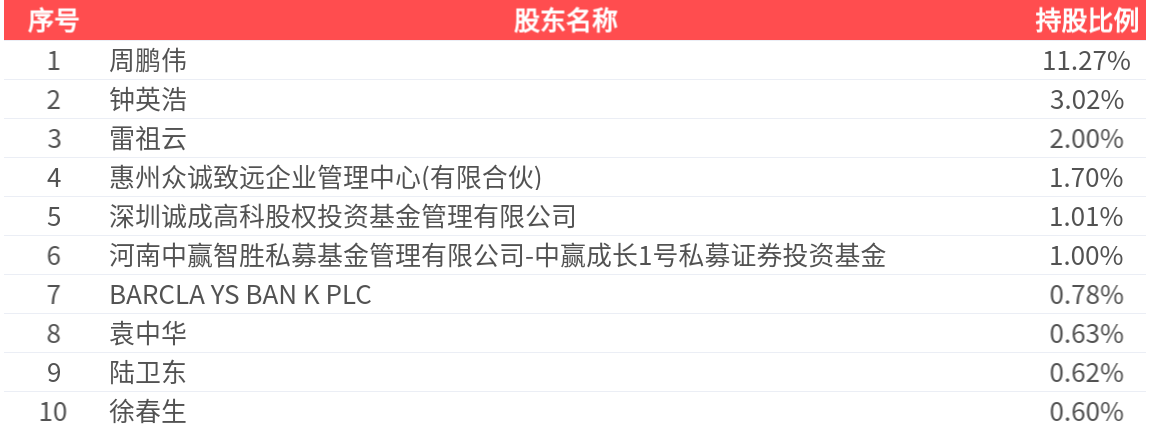 公司股东户数为2.19万户,前十大股东持股数量为2696.69万股,占总股本比例为22.63%,前十大股东持股情况如下: