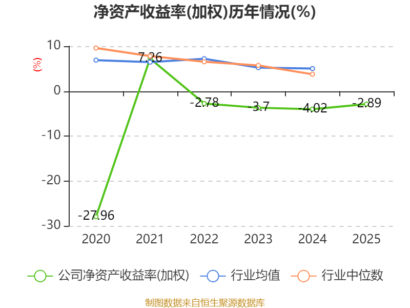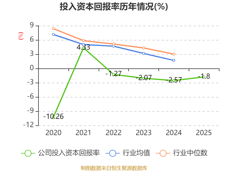 数据显示,2025年公司加权平均净资产收益率为-2.89%,较上年同期上升1.13个百分点。公司2025年投入资本回报率为-1.8%,较上年同期上升0.77个百分点。